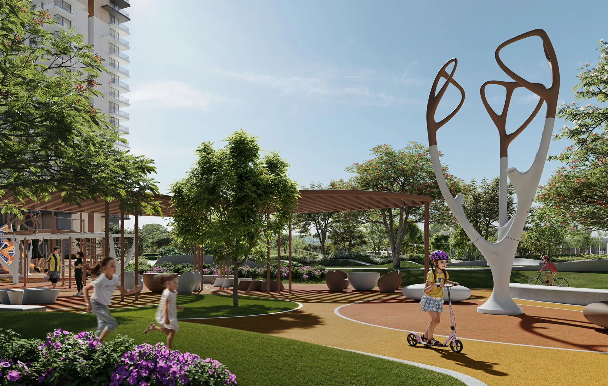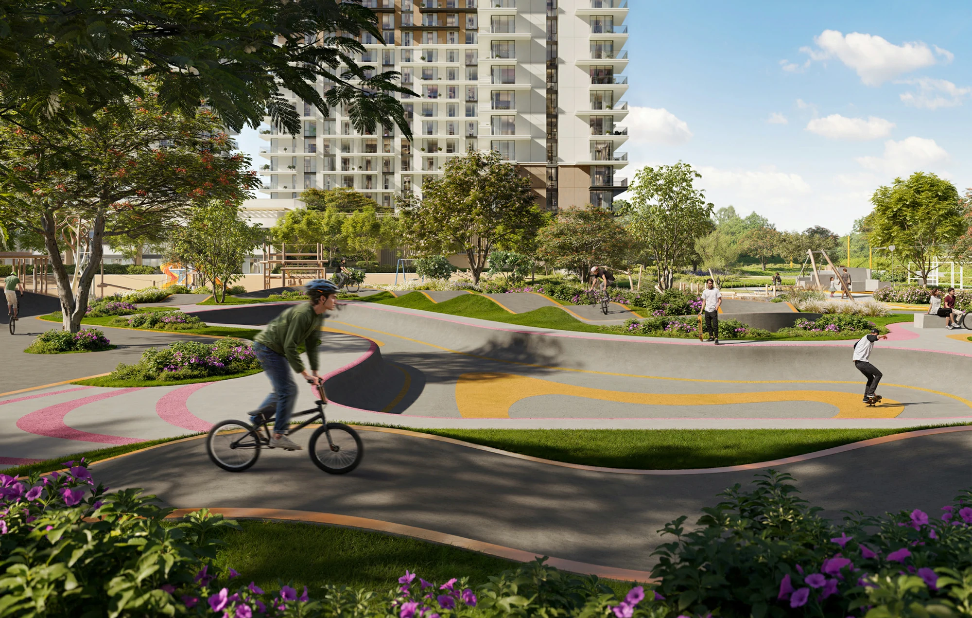 Modern 1–3 bedroom apartments and townhouses in a serene, nature-inspired community by Vida Interiors with panoramic views and social spaces.
